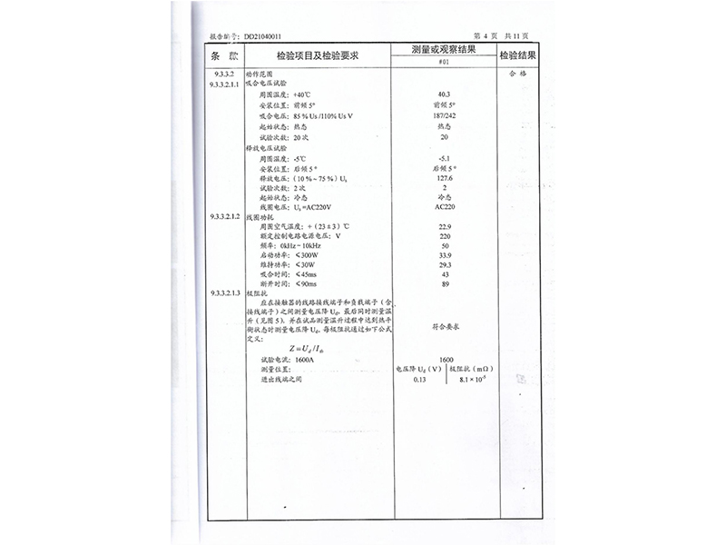 報告礦熱爐低壓無功補償專用真空接觸器型式試驗報告
